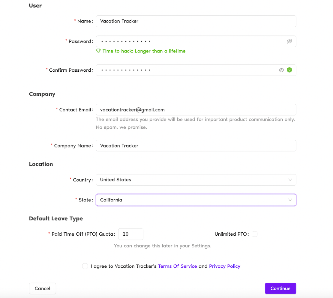 This option is useful if your organization is not yet using one of our other integration options! With this option, both leave request responses and notifications are received via email. Invitations to join Vacation Tracker are also sent via email. Once users accept the invitation, they will be asked to create an account to sign into the Vacation Tracker account!